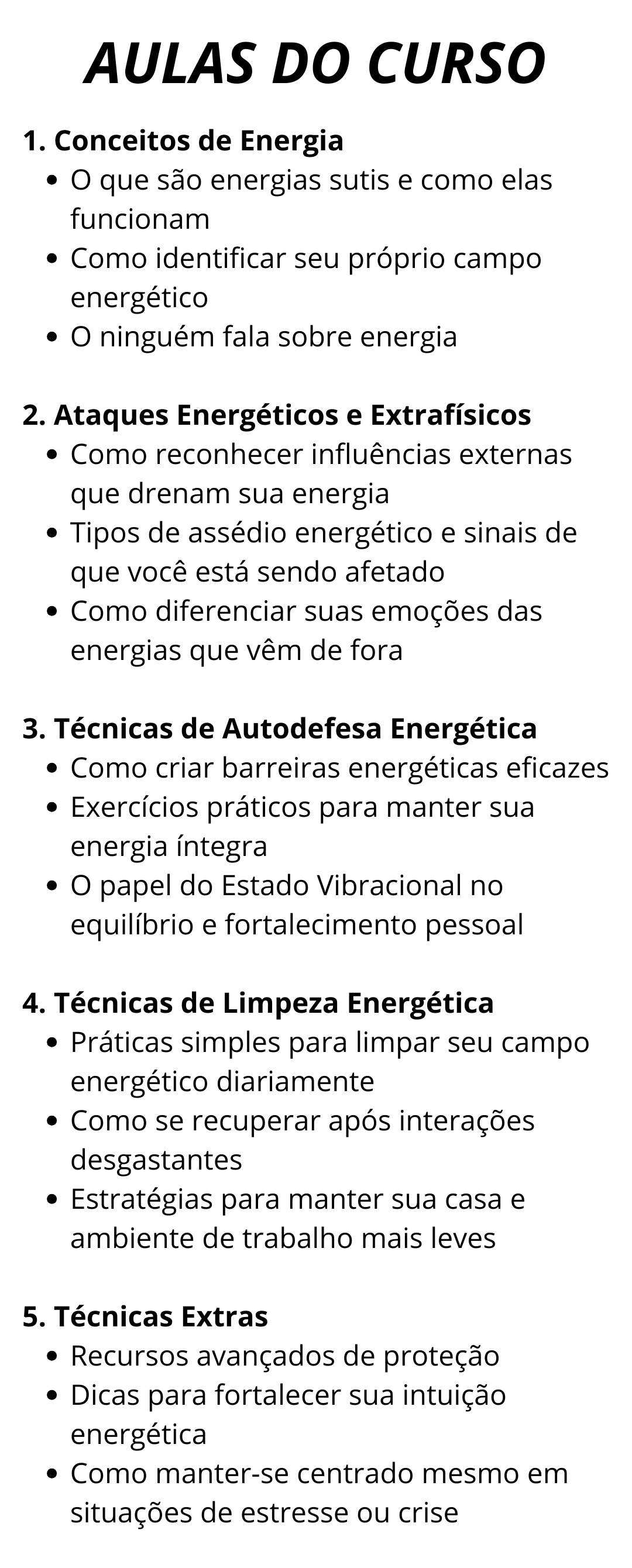 - Qualquer pessoa que deseja aumentar sua autodefesa energética e viver com mais leveza e bem-estar.